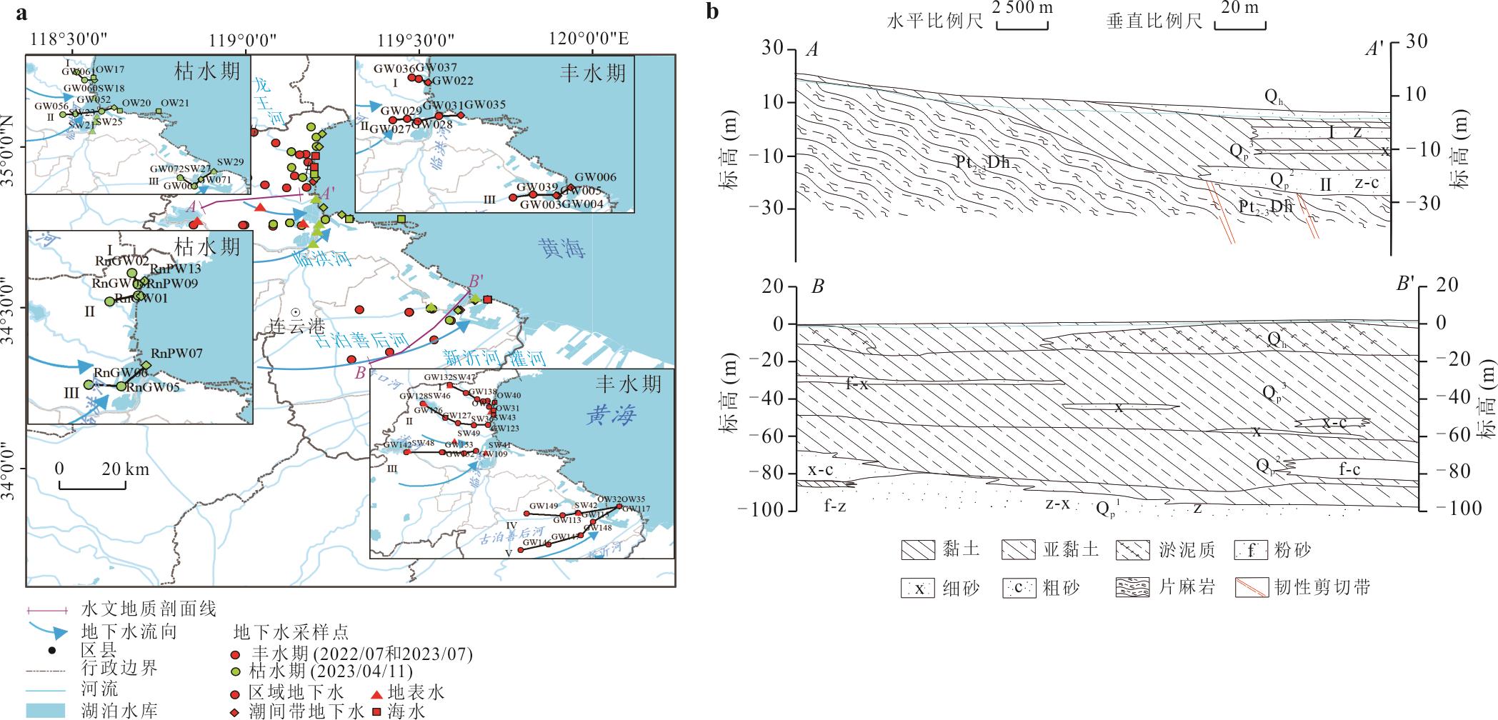 溶解性有机质(dissolved organic matter,DOM)在滨海湿地碳循环过程中发挥着重要作用,滨海地区水文过程的季节变化会影响DOM的组成,从而控制氮的迁移和转化途径.本研究选取江苏省连云港市滨海湿地作为研究区,基于地下水、河水以及海水的水化学数据,结合三维荧光光谱和紫外可见光谱,研究了DOM的季节特征及其对氮转化的影响.结果表明:滨海地区地下水DOM包括3种组分:陆源类富里酸(C1)、陆源类腐殖酸(C2)和微生物源类蛋白组分(C3).研究区内NH4⁃N和DOC浓度随着距海岸越近逐渐升高,N浓度与DOM组分特征相关.丰水期地下水受到降雨和河水补给,外源大分子DOM入渗伴随着NH4⁃N进入地下水.含水层处于偏还原状态,硝化过程受到抑制.枯水期咸淡水之间的相互作用较弱,此时地下水中C3组分较高.同时含水层处于氧化性较强的环境中,促进了硝化作用.在潮间带地下水中,DOM的特点是腐殖化程度较高,NH4⁃N和DOC富集程度表明土壤含氮有机质的矿化.此外,较长的水体滞留时间和较强的微生物活动很可能会促进硝酸盐异化还原成铵(dissimilatory nitrate reduction to ammonium,DNRA),并导致NH4⁃N进一步富集.