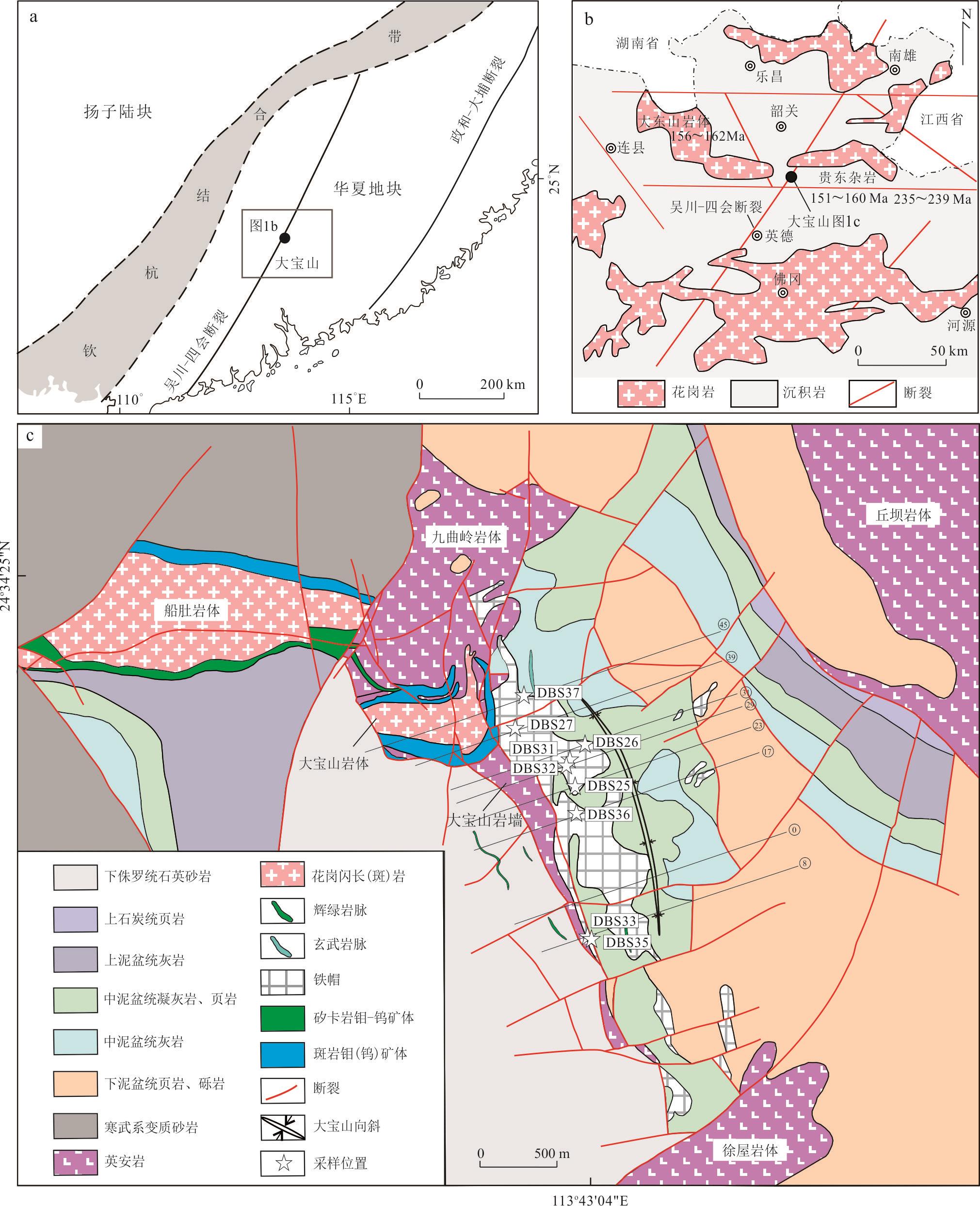 Wang, L., Hu, M.G., Yang, Z., et al., 2011. U⁃Pb and Re⁃Os Geochronology and Geodynamic Setting of the Dabaoshan Polymetallic Deposit, Northern Guangdong Province, South China. Ore Geology Reviews, 43(1): 40-49.https://doi.org/10.1016/j.oregeorev.2011.06.008 |