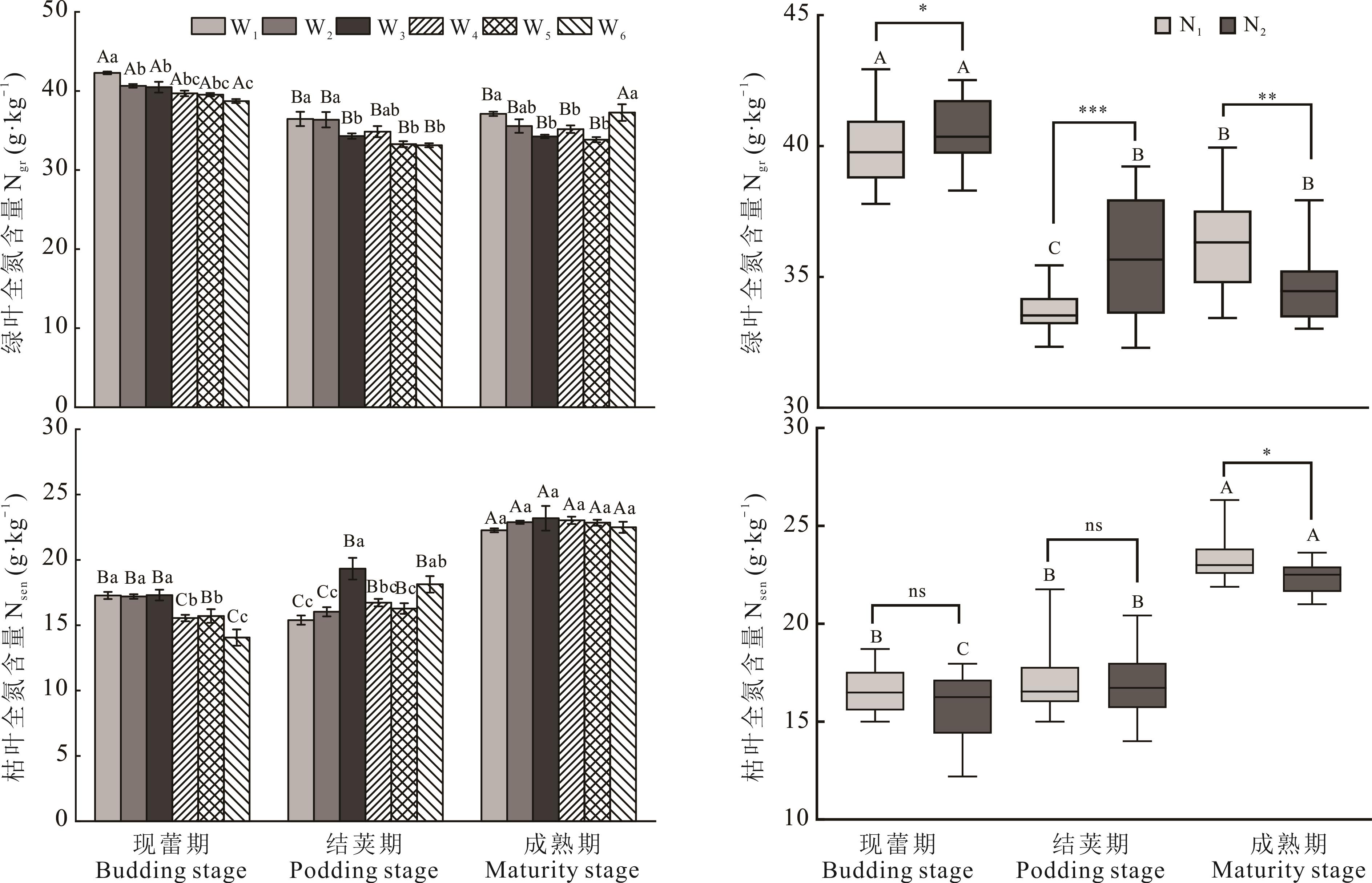 河西走廊绿洲区灌溉和施氮肥下苜蓿生殖期叶片养分特性及其与种子产量的关联