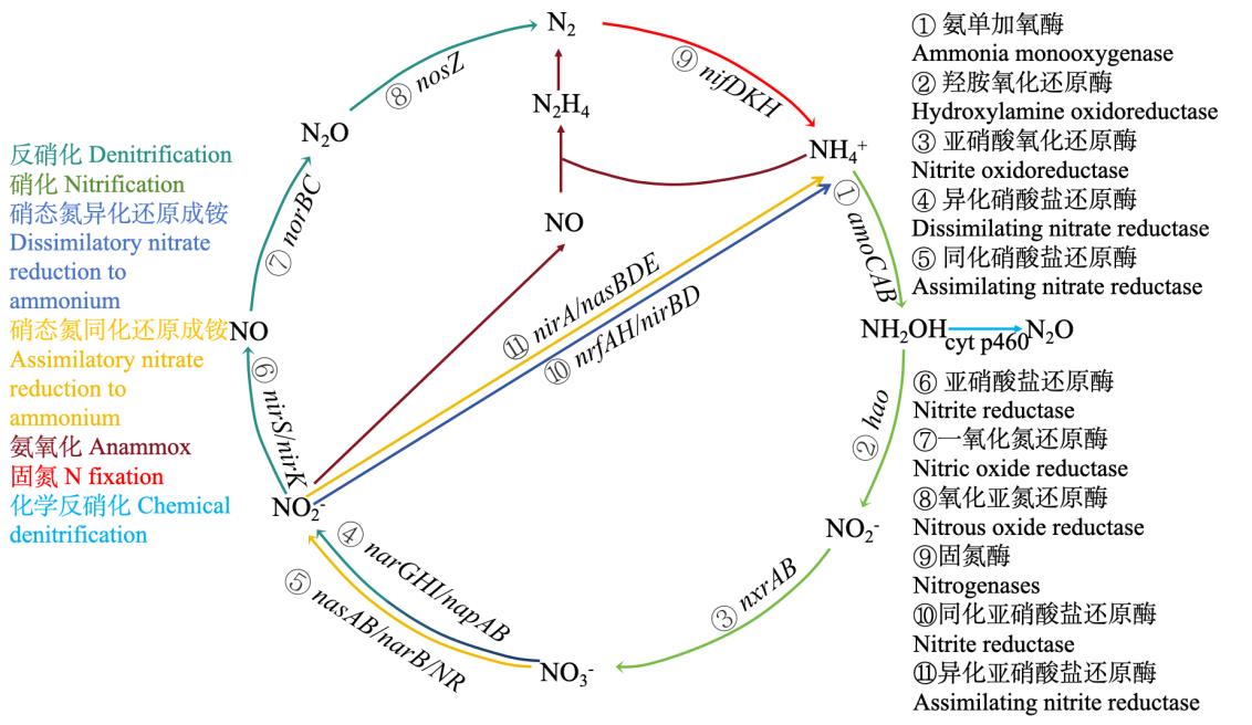 Yang S, Wu S J, Cai Y J, et al. The synergetic and competitive mechanism and the dominant factors of dissimilatory nitrate reduction processes: A review. Acta Ecologica Sinica, 2016, 36(5): 1224-1232. |
