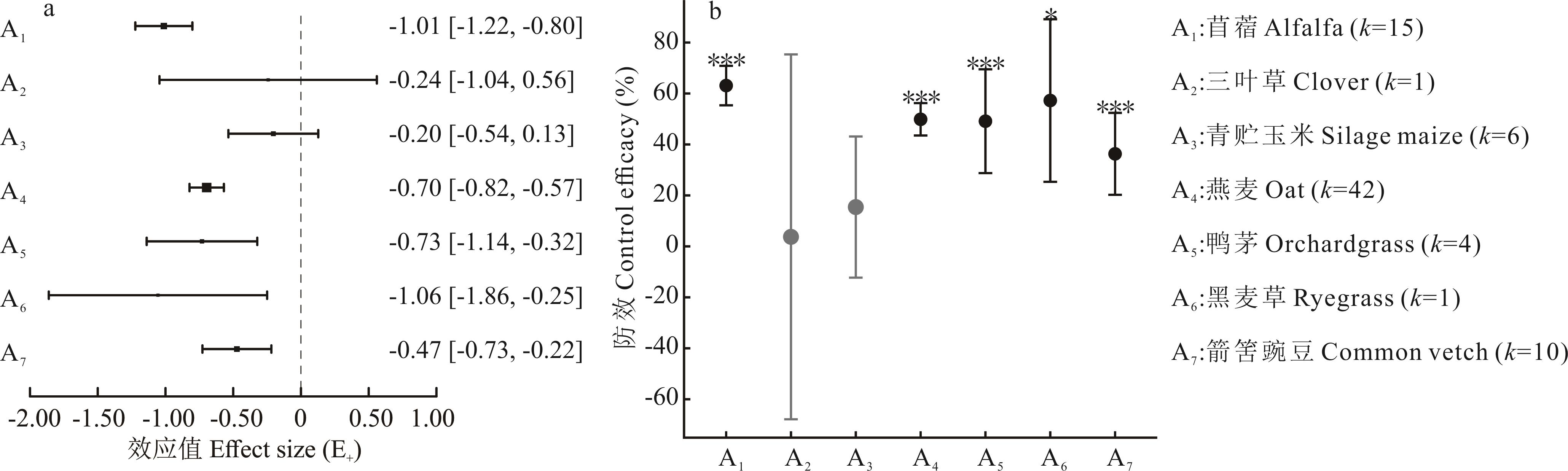 生防菌剂 / 饲草作物 / 病害 / 防效 / Meta分析
