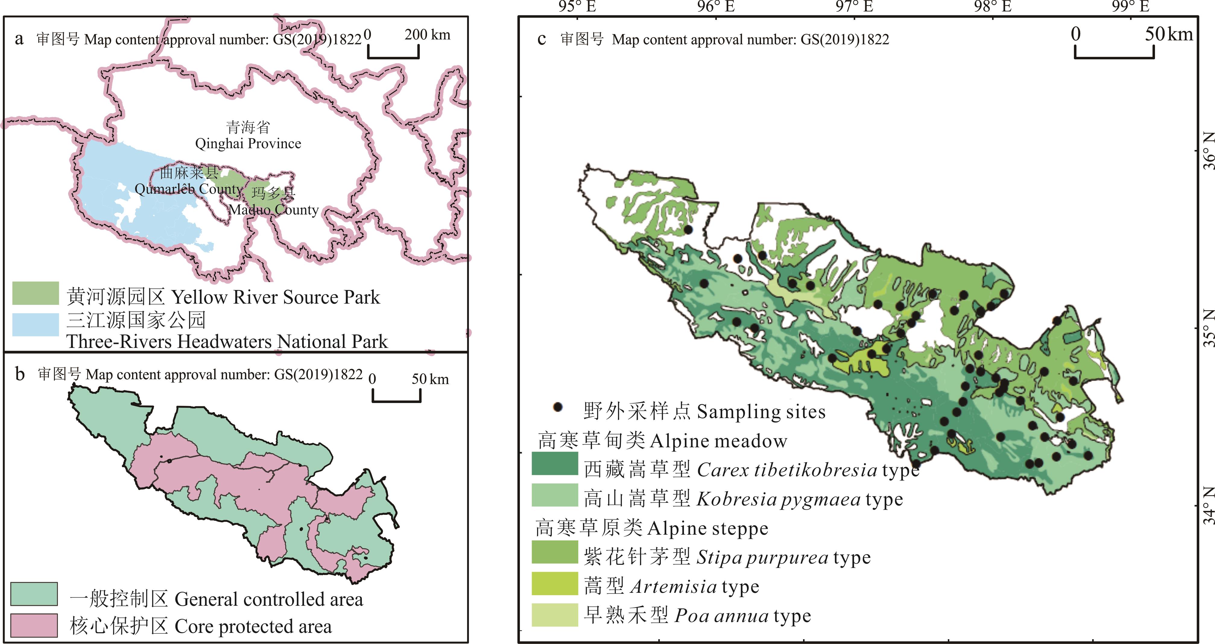 草地健康是草地生态系统完整性、稳定性和可持续发展程度的关键表征,近年来三江源国家公园黄河源园区对退化草地进行恢复治理,但对当前草地健康状况仍缺乏系统评估。本研究参考生态系统健康理论,解析草地健康概念,基于高寒草地特点,运用专家经验,构建综合反映草地健康整体状况的草地健康指数(grassland healthy index, GHI),包括植被状况、地表生物特征、生物多样性和牧草生产性能特征等,分区、分类、分型评价2022年黄河源园区高寒草地健康状态和等级。结果表明:1)高寒草原类和高寒草甸类草地在植被群落特征指数、地表特征指数、生物多样性指数和牧草生产性能指数等方面存在差异,尤以生物多样性指数差异最为明显。2)黄河源园区当前草地健康指数(64.98)整体呈亚健康状态,高寒草原类GHI(66.70)略高于高寒草甸类(62.30),高寒草原类下的早熟禾型与其他两种草地型均存在显著差异,但紫花针茅型与蒿型之间的差异不显著,高寒草甸类下各型存在显著差异。3)从功能分区来看,核心保护区草地健康指数(59.30)较一般控制区(69.50)更低,可能是生态本底脆弱、历史上长期过度放牧和区划变动等因素导致高寒草地尚未完全恢复。本研究可为三江源国家公园生态保护与区域高质量发展提供新的方法视角,同时可为提升自然保护地体系空间布局提供科学参考。