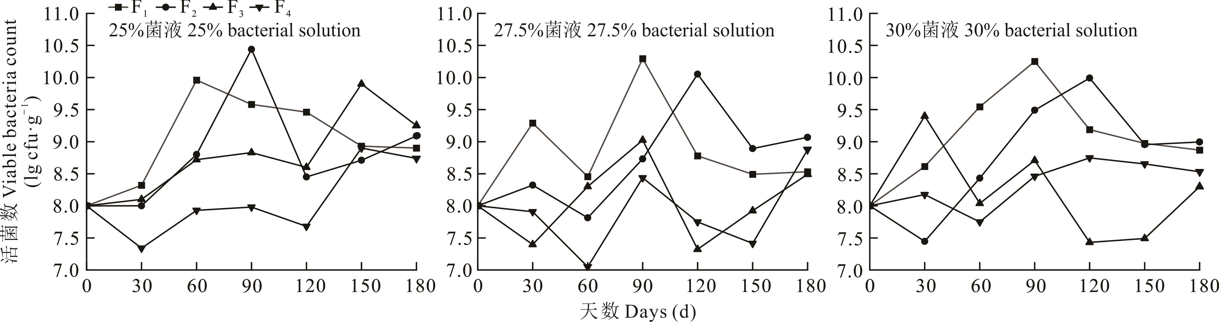 为了探究凹凸棒加有机基质作为菌肥载体的可行性以及制作菌肥时菌液的最佳添加量。本试验通过向有机基质中添加不同梯度凹凸棒(分别为5%、7.5%、10%)作为菌肥载体,然后向其中添加不同梯度菌液(分别为25%、27.5%、30%)制作成固体菌肥;通过测定菌肥货架期及紫花苜蓿盆栽试验验证菌肥促生效果,确定凹凸棒添加量以及菌液添加量。结果显示:菌肥保存180 d后,不同载体菌肥有效活菌数均大于2×108 cfu·g-1,杂菌数均小于3×106 cfu·g-1,其中5%凹凸棒加25%的菌液(F2+25%菌液)处理效果最好;7.5%凹凸棒加30%菌液(F3+30%菌液)处理下,紫花苜蓿结瘤数最多,为62.7个·盆-1,较对照提高了317.8%。5%凹凸棒加25%的菌液(F2+25%菌液)处理下,紫花苜蓿地上、地下生物量、叶绿素含量较对照分别提高了46.5%、86.2%和54.9%;总根长、总根表面积、根尖数和根分叉数较对照提高了87.7%、108.4%、96.2%和252.0%;通过隶属函数分析得出,5%凹凸棒加25%的菌液(F2+25%菌液)处理对紫花苜蓿促生效果最好。